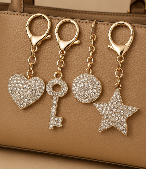 luxury to your everyday items with Luxe Diamond Keychains and Bag Charms. Adorned with diamonds and crafted from premium materials, these charms are the perfect way to elevate your style. Perfect for bags, keys, and gifts.