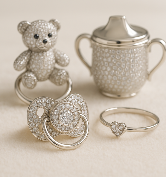 Exclusive and Unique: These diamond-adorned items are perfect for parents who want to provide their children with something special and unique. Ideal for baby showers, first birthdays, or as an heirloom gift.