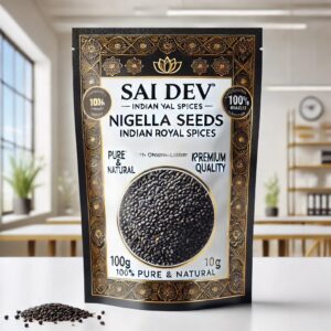Sai Dev Brand Indian Royal Spices Premium Nigella Seeds (Kalonji) are carefully sourced from India’s leading spice-growing regions. Our 100g pack is designed for freshness, making it ideal for home use, restaurants, and wholesale buyers. Nigella seeds are widely used in Indian, Middle Eastern, and Mediterranean cuisine, as well as traditional Ayurvedic remedies.