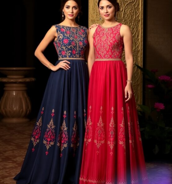 Flattering Silhouettes – A seamless fusion of Indian and Western styles, these gowns are designed to enhance your elegance and confidence.